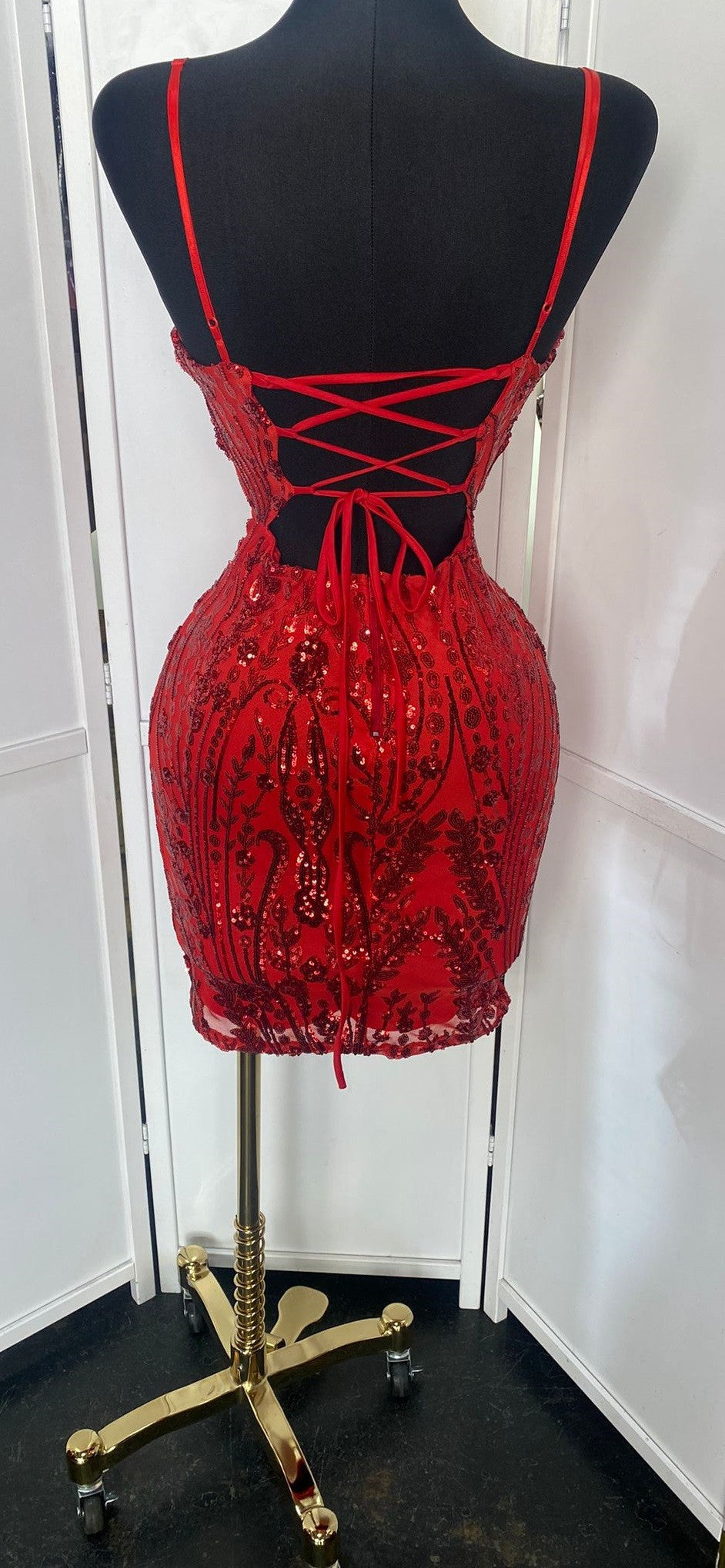 Red Sparkle back design and curve contouring silhouette to highlight those curves in all the right places. Perfect for a night out, birthday, cocktail girls night